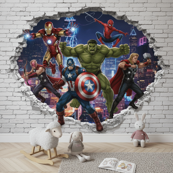 Estampas de super-heróis trazem energia e identidade ao quarto, incentivando brincadeiras criativas e expressão pessoal. Versões com traços modernos ou ilustrações vintage permitem adaptar o tema a diferentes faixas etárias e estilos de decoração.